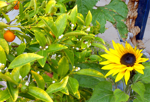 January 24, 2010January 25, 2010 global warming? Maybe this has to do with global warming, maybe not, but a self seeded sunflower blooming on my balcony in January together with the oranges is very strange. Share this: Click to share on Facebook (Opens in new window) Facebook Click to share on WhatsApp (Opens in new window) WhatsApp Like Loading...