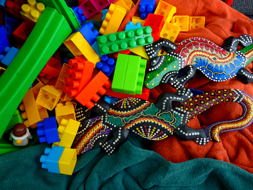 Today I visited again the once a month carbootsale at the old airport. Found apart from 2 books, 2 videos (Fawlty Towers which we will watch tonight as a treat), one DVD (Easy Rider, to watch for the nth-time) 2 terry cloth sweaters in exact complementary colours, shame they cannot be worn at the same time, a bucket of Lego for my little friend and Australian lizards to remind me of Elaine and WA.
