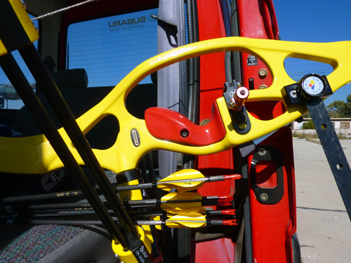 I finally decided that I had added and sanded enough epoxy putty to my bow handle and painted it red. Just in time for the beginning of the 70m outdoor season which started with perfect weather for the weekend training.