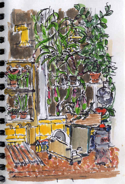 moved on into the kitchen. The other problem with sketching this time of year is that it is always dark when I am home. Still the pitcher plant looks nice even without much light.