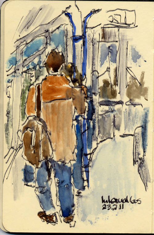 speed-sketching in the 10 minutes the internal airport bus takes to make one round.