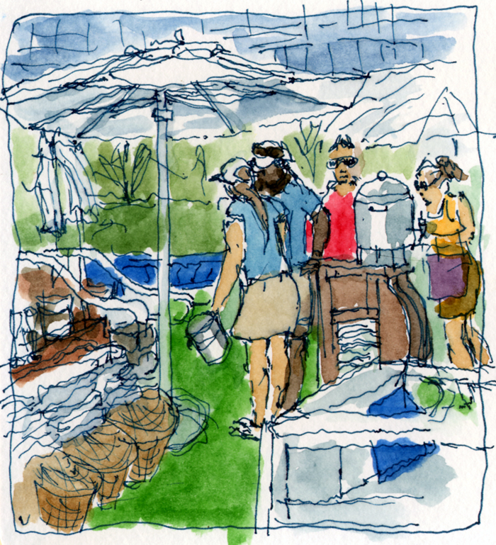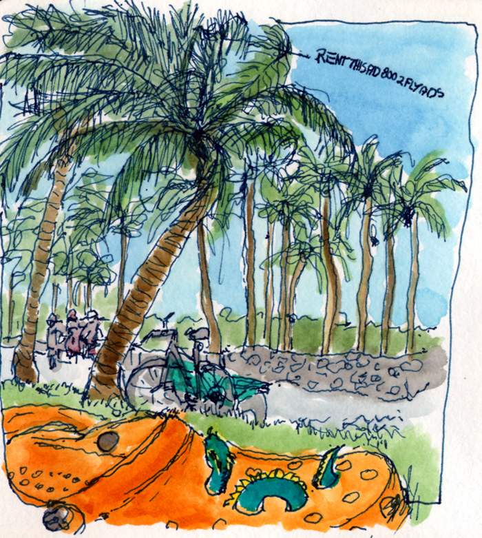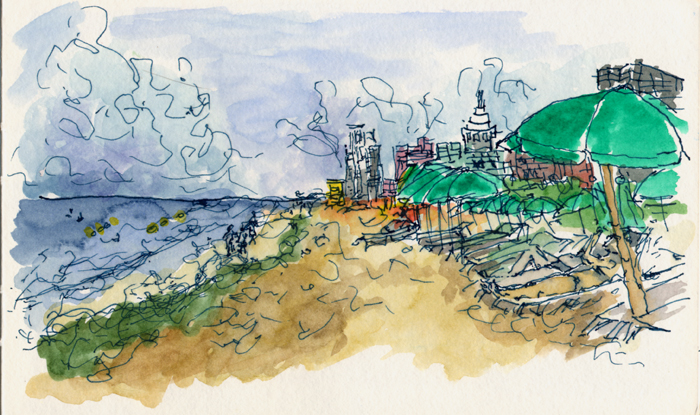 just came back from a 10 day trip to Miami and San Francisco where we had a great time. I did not do as much sketching as I had planned, just too busy seeing things, walking around, eating and I admit it, shopping. Above the beach in front of the hotel in Miami beach.