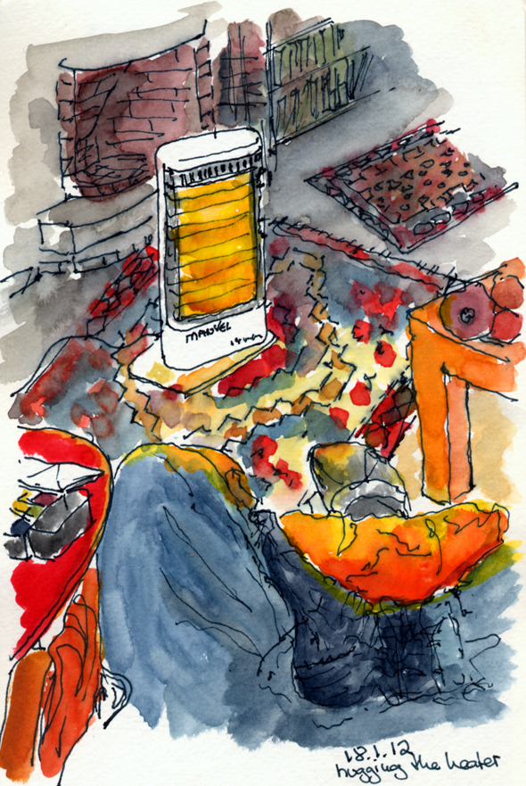 January 18, 2012 the heater and me we are going through a cold spell these days, sunny but cold. To save on heating oil I (as a lot of people these days) have taken to sitting with a small halogen heater. I like the way it bathes everything in a golden light. 37.846586 23.772208 Share this: Click to share on Facebook (Opens in new window) Facebook Click to share on WhatsApp (Opens in new window) WhatsApp Like Loading...