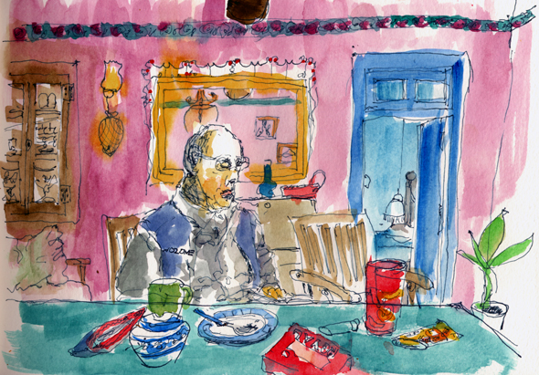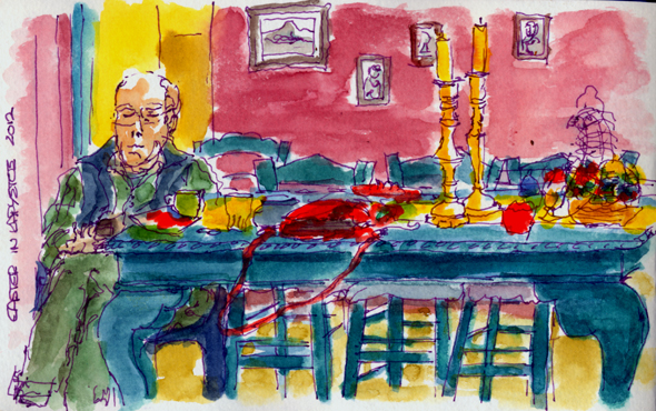 evenings inside, tried to use a large sketchbook but it is difficult to handle the space.