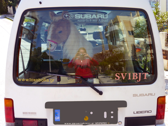 Einen wiehernden Amtsschimmel im krisengeschüttelten Griechenland öffentlich sichtbar herumzufahren… Ganz schön mutig! 😉