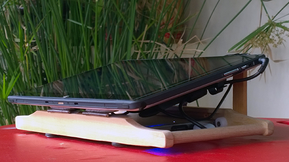 my Chinese tablet computer blew its battery (literally, although I do admit that I dropped it first) and I could not find a replacement anywhere, nor could any specialists help, so I decided to upgrade and fix it myself. Bought a 20.000mAh external battery with a 19V output and made a new, much improved housing, including 2fans to cool things down (it is after all running with an i3 chip), basic inclination for working the touchscreen and a steep inclination for watching movies. It now also has 2 stable handles (one thing I don’t like about tablets in general is the fact that there is nothing really to hold on to) and at the same time a good wide base to sit on a table or one’s lap.