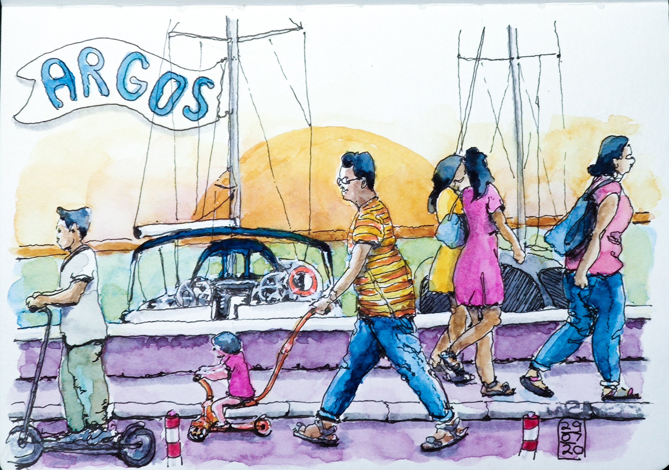 July 31, 2020 Evening&argos Trying to find a way to sketch the famous Argos: solution, include as many sea-front strollers as possible. Share this: Click to share on Facebook (Opens in new window) Facebook Click to share on WhatsApp (Opens in new window) WhatsApp Like Loading...