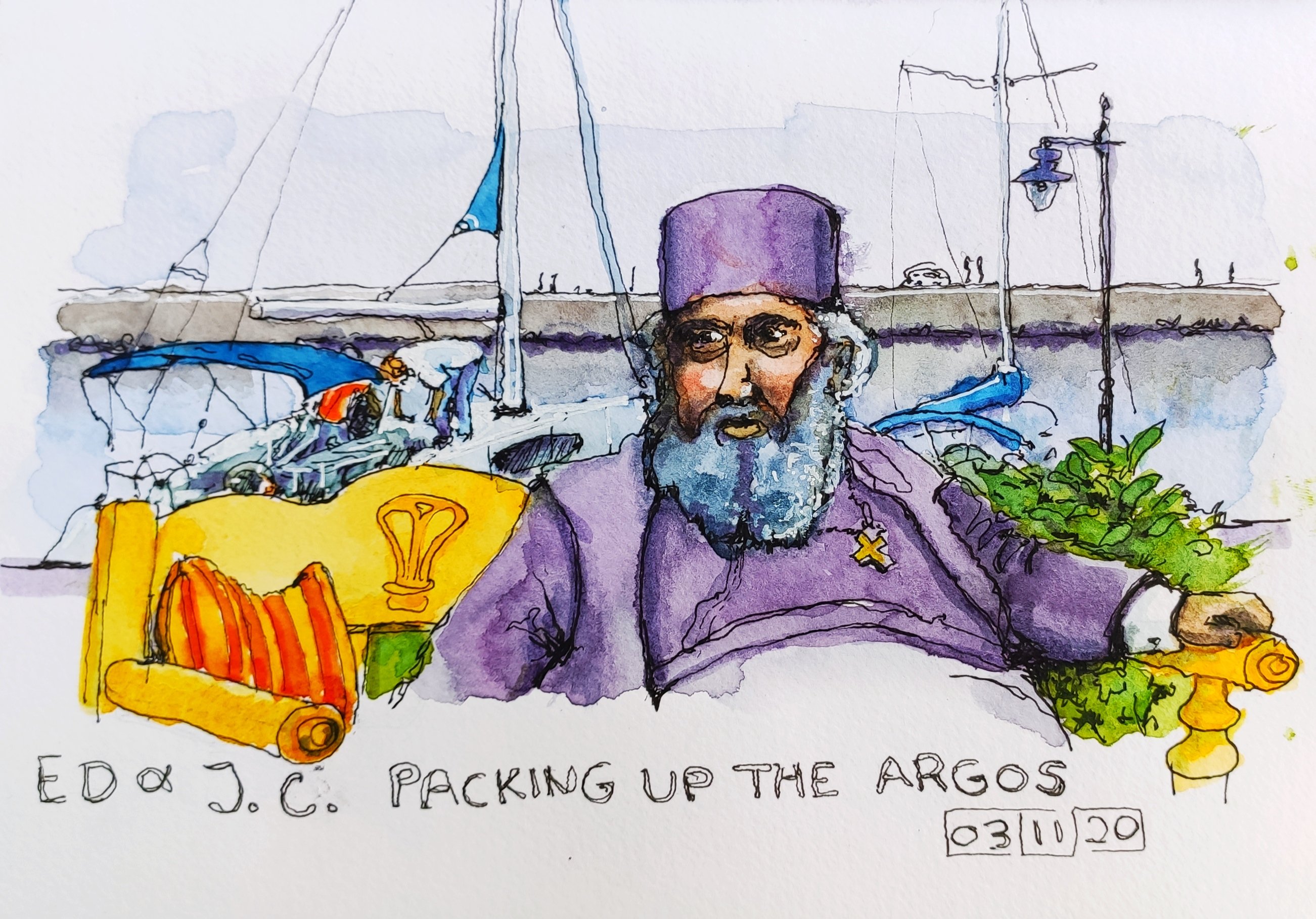November 4, 2020 packing up Argos The aim was to sketch the Argos and the end of sailing season, but then this very attractive priest got in the way… Share this: Click to share on Facebook (Opens in new window) Facebook Click to share on WhatsApp (Opens in new window) WhatsApp Like Loading...