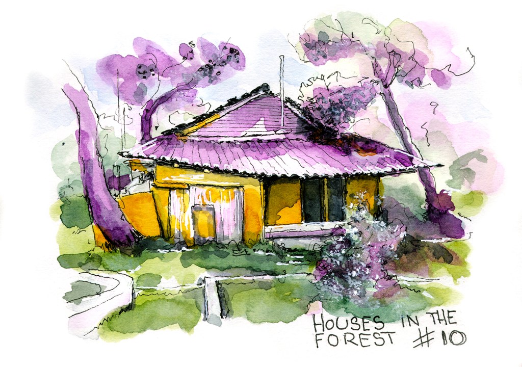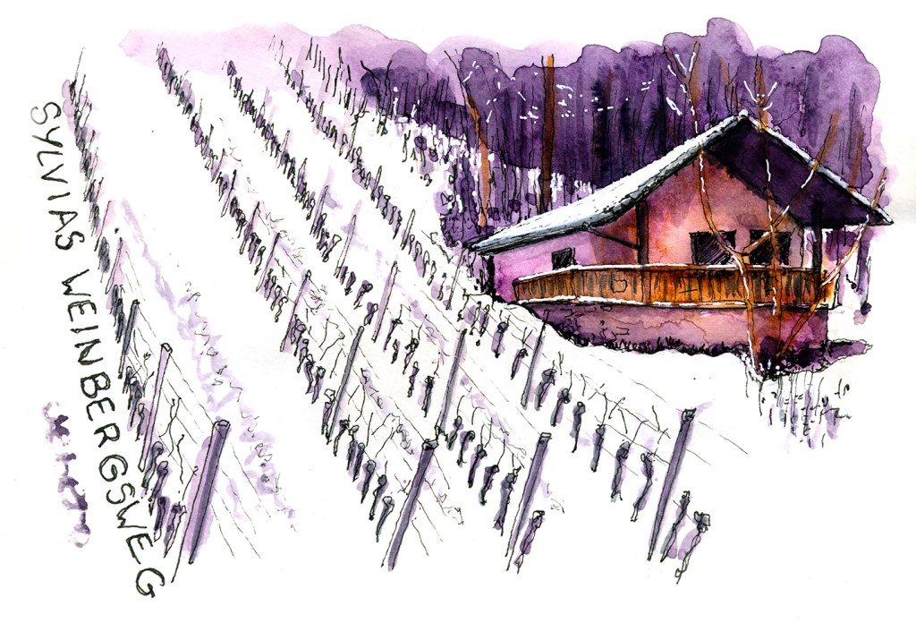 yes, there are a lot of houses in this forest. But now for something completely different, my friend Sylvia suggested to paint a hut that is on her customary walk in the wine-growing area around Würzburg and I realized how difficult it is to sketch something has seems to have no color whatsoever arghhh.