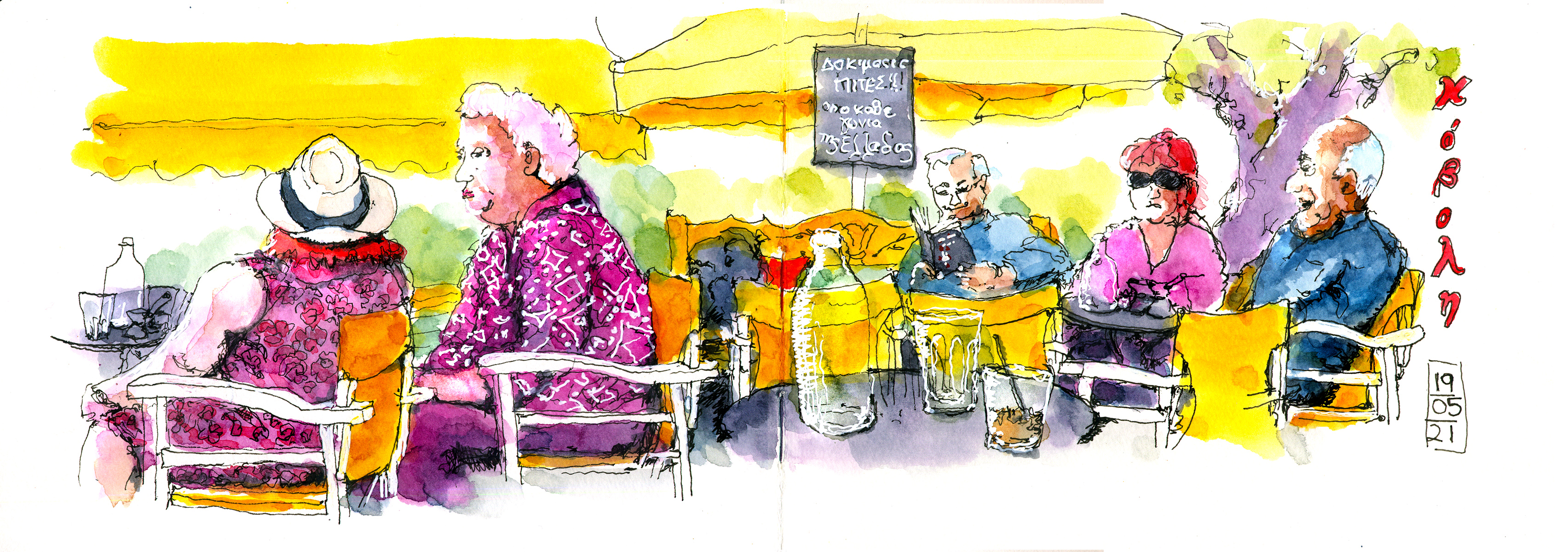 May 19, 2021 cafe sketching back on first time back sketching in my favorite cafe in Karystos as lockdown measures are being eased. Share this: Click to share on Facebook (Opens in new window) Facebook Click to share on WhatsApp (Opens in new window) WhatsApp Like Loading...