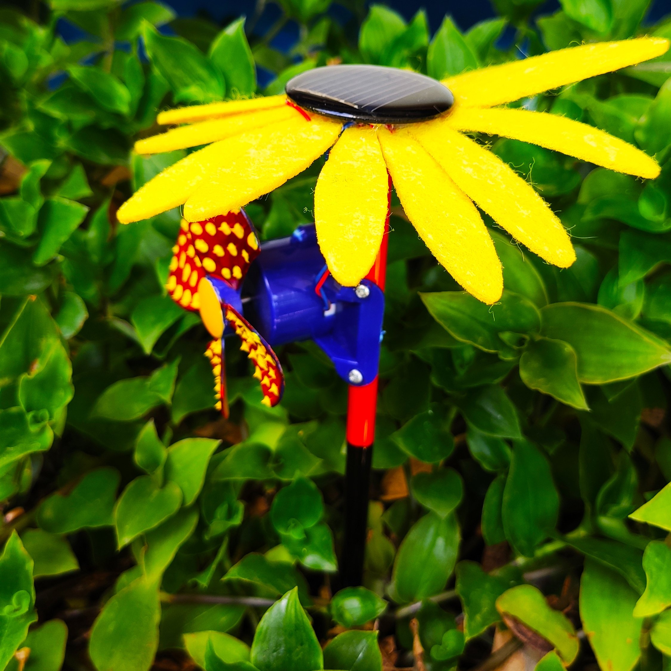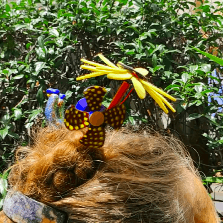 Always on the lookout for new hairpin ideas, found an unused cap with integrated fan and promptly cut, changed, painted, added and subtracted…and now have a fully solar hairpin that can be kept in a flowerpot when I don’t use it.