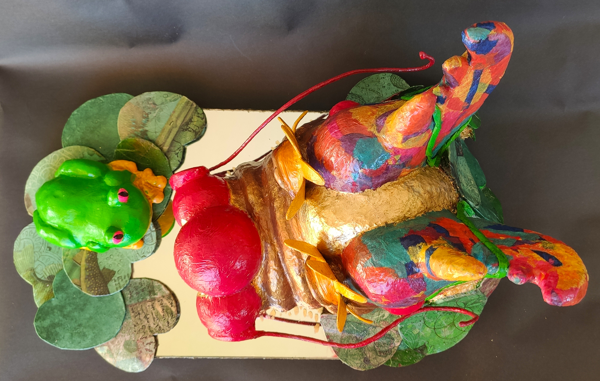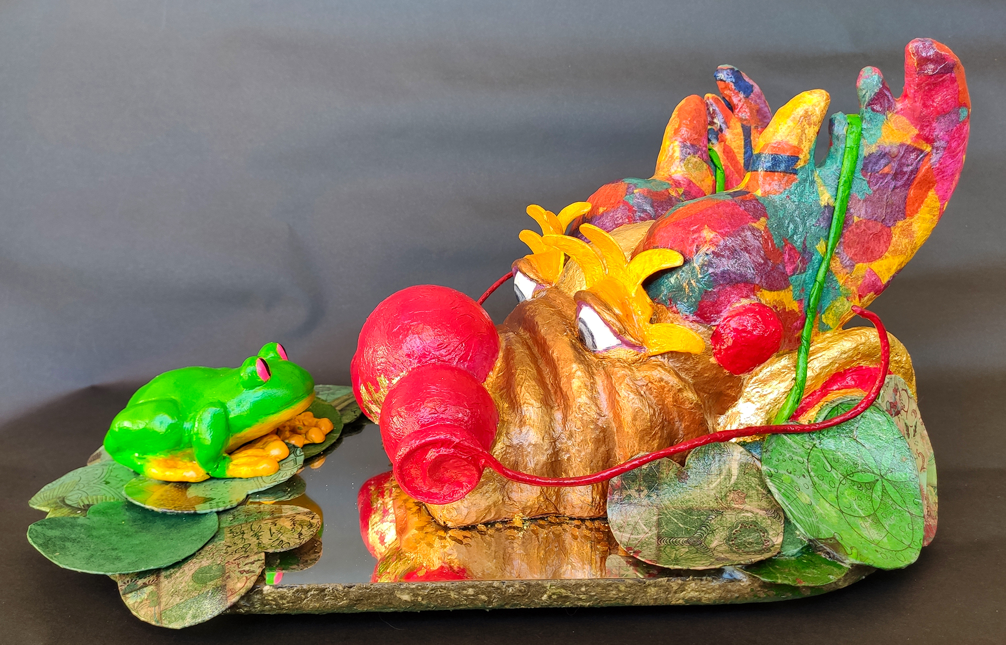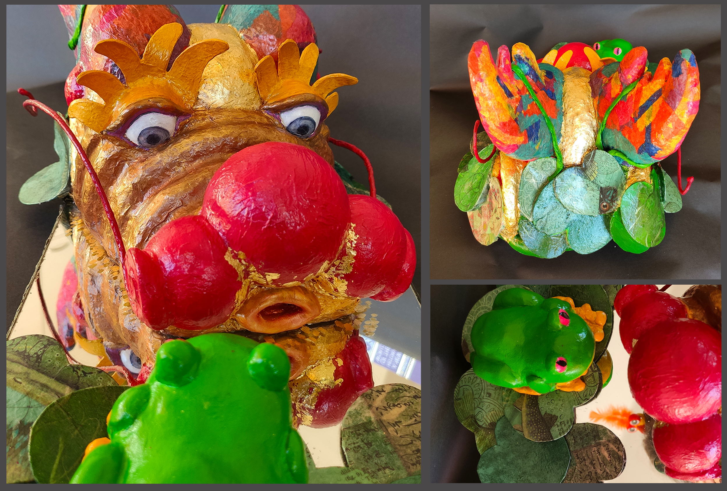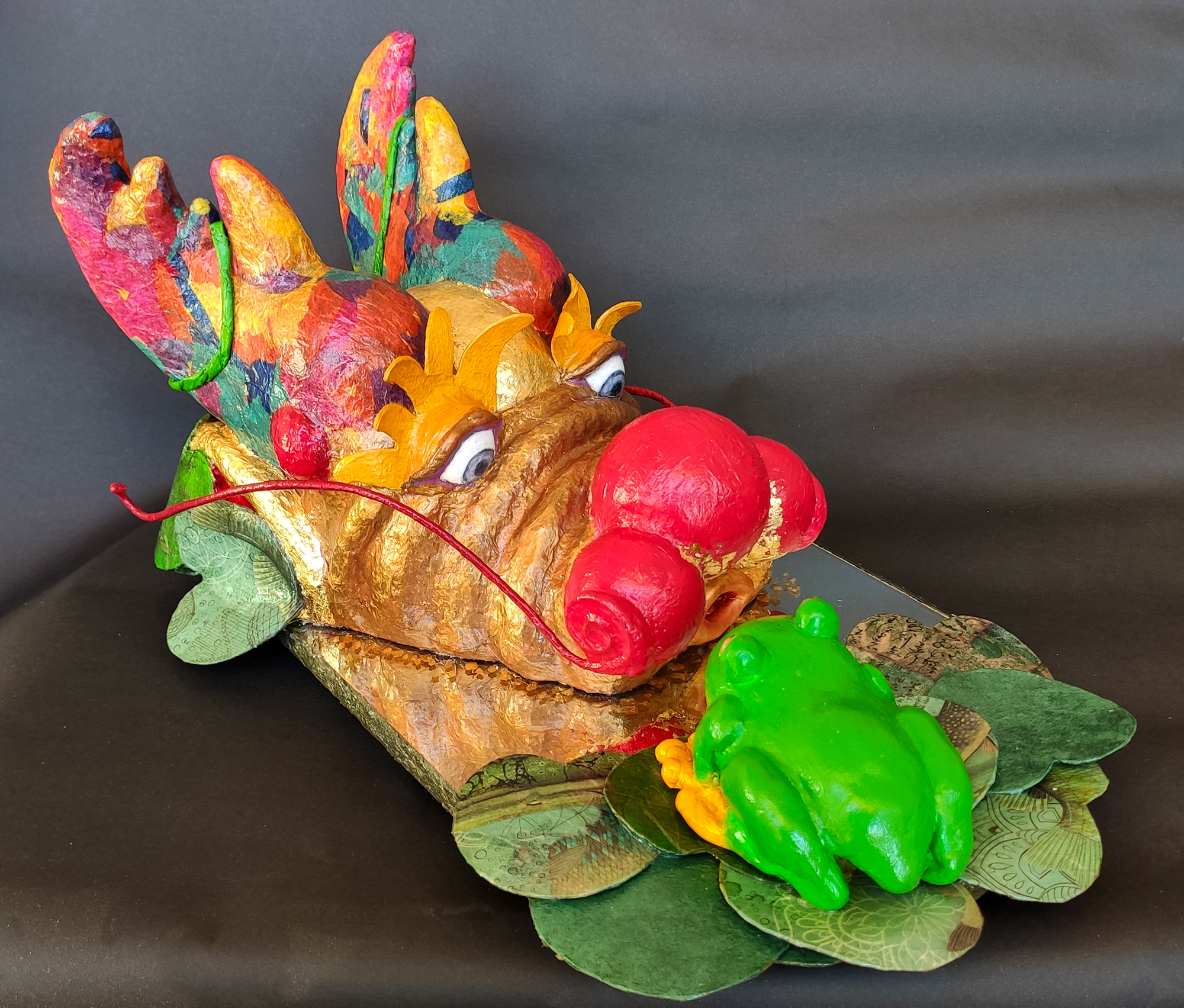 1. Lovely! The detail is amazing. Looks like he (the dragon) is giving Mr. Frog some dating advice or listening to Mr. Frog tell a good story.