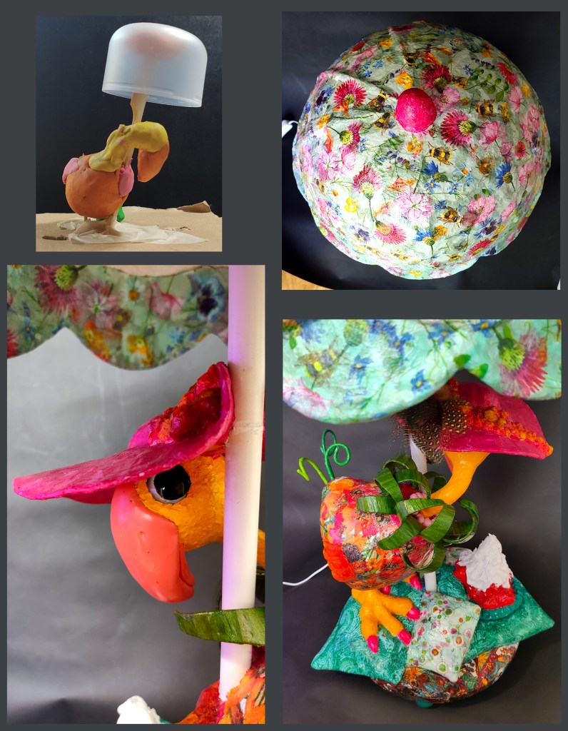 November 14, 2022 adelheid’s umbrella lamp I thought not doing something with 8 arms would be easier, but then there have to be strawberries with cream and pillows and umbrellas and lights…. RGB no less. Papier mache as usual. Share this: Click to share on Facebook (Opens in new window) Facebook Click to share on WhatsApp (Opens in new window) WhatsApp Like Loading...